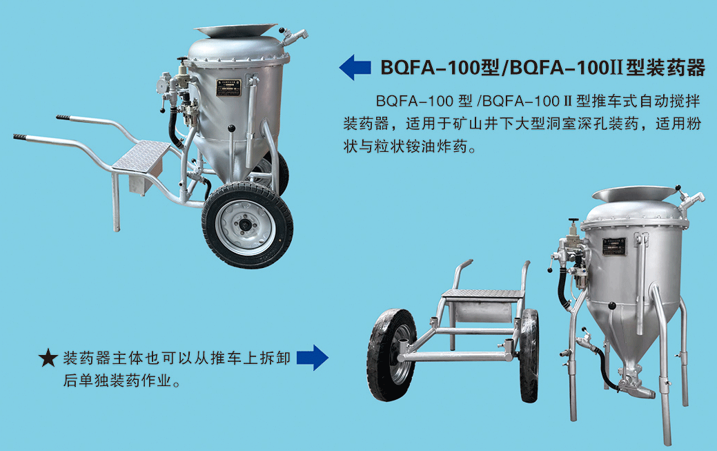 BQFA型自動(dòng)攪拌系列裝藥器,與人工攪拌相比,無需人工攪拌,節(jié)省人力且攪拌均勻,移動(dòng)方便,操作簡單便捷,大大降低人工勞動(dòng)強(qiáng)度,提高裝藥密度、爆破質(zhì)量,減少施工作業(yè)時(shí)間。先后出口塔吉克斯坦、老撾,秘魯,尼日利亞、法國等國家,使用情況反饋中得到一致好評(píng)并大力推薦。