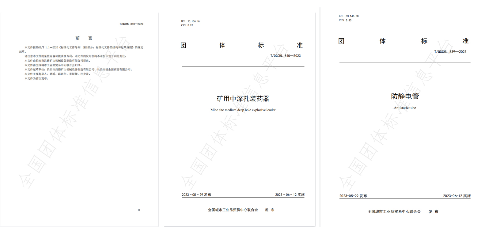 制定標(biāo)準(zhǔn)實施-《礦用中深孔裝藥器》與《防靜電管》